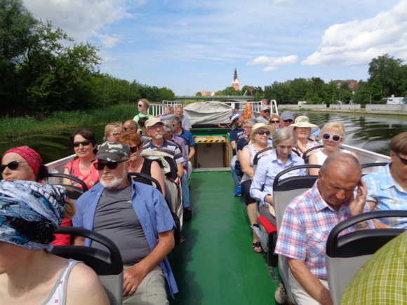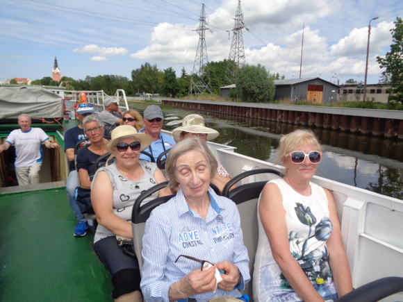Elbląg przywitał nas słoneczną pogodą. W oczekiwaniu na rejs, zwiedziliśmy gotycki kościół parafialny, muzeum przedstawiające czasy osadnictwa dające początek osadzie, jej historię, wyglad miasta przed II wojną światową i po zniszczeniach wojennych. Obejrzeliśmy panoramę miasta z wieży, a następnie rozpoczęliśmy rejs statkiem kanałem Elbląsko-Ostródzkim. Podróż statkiem jest jedną z największych atrakcji turystycznych Polski. Kanał wraz z okolicą jest siedliskiem rzadkich gatunków zwierząt chronionych. Jesteśmy pełni podziwu dla budowniczych kanału, ich wyobraźni wykraczającej poza czasy, w jakich przyszło im realizować to niezwykle śmiałe przedsięwzięcie. Rejs statkiem po trawie, pokonującym różnicę wysokości między jeziorami pozostawia niezatarte wrażenie. Zorganizowana wycieczka pozwoliła nam przeżyć wspaniałe przygody.